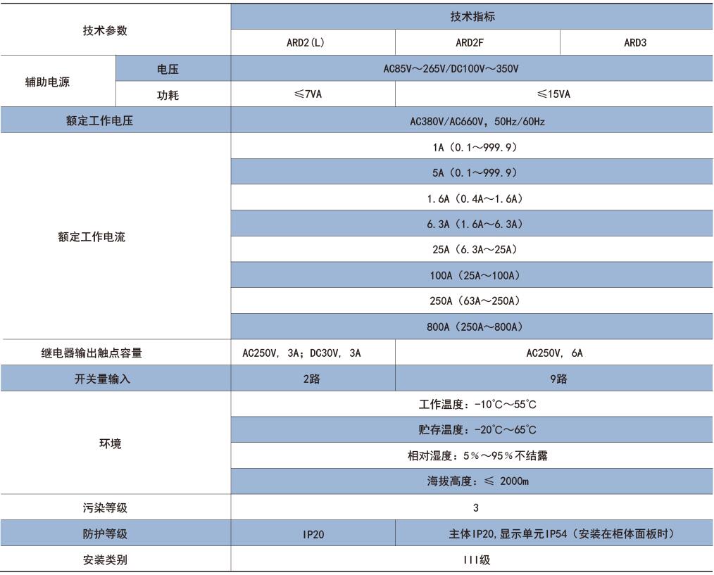ARD2(L)、ARD2F、ARD3主要技术指标