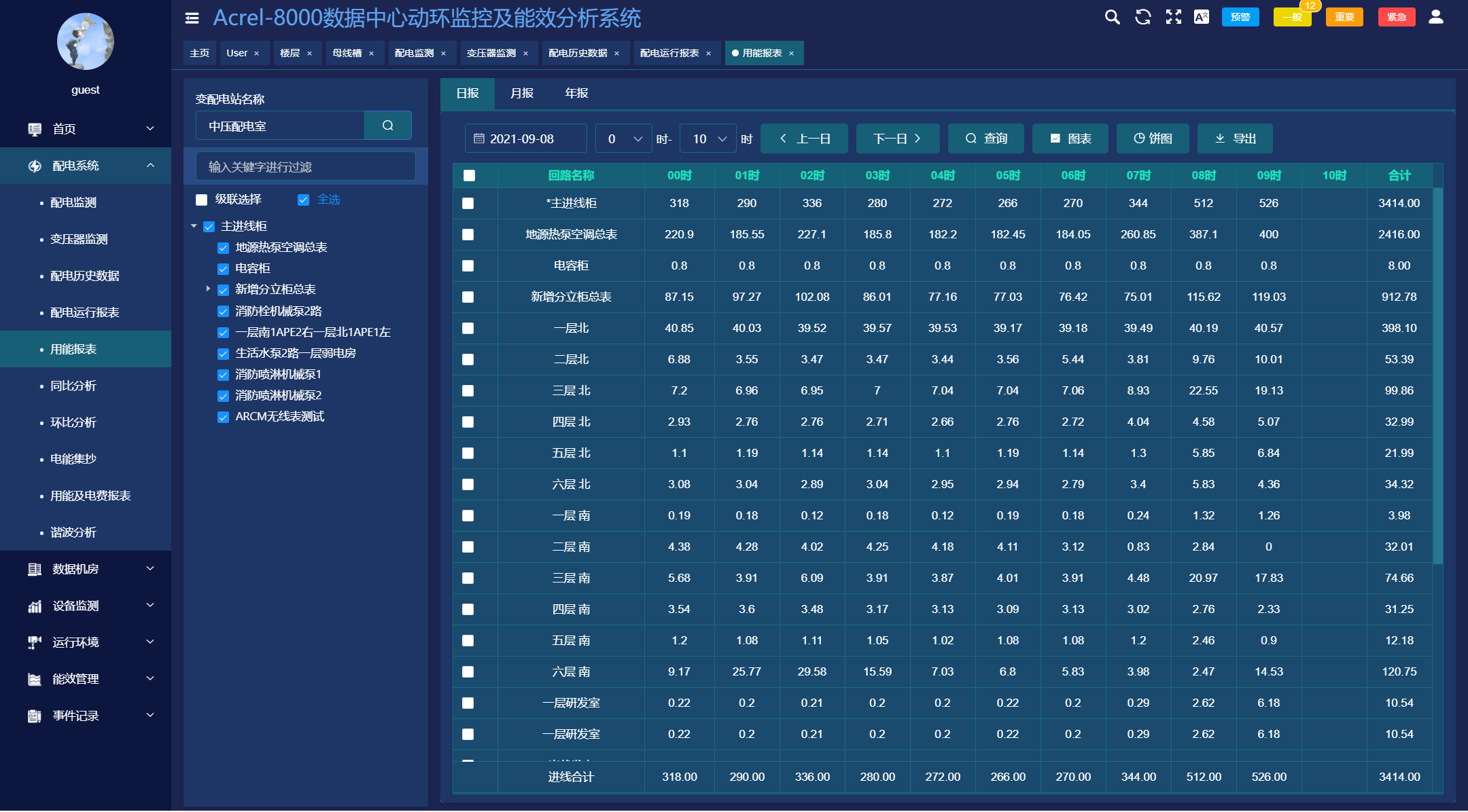 电力监控系统以丰富的报表体支撑量体系的完整性。系统具备定时抄表汇总统计功能,用户可以自由查询自系统正常运行以来任意时间段内各配电节点的用电情况,即该节点进线用电量与各分支回路消耗电量的统计分析报表。