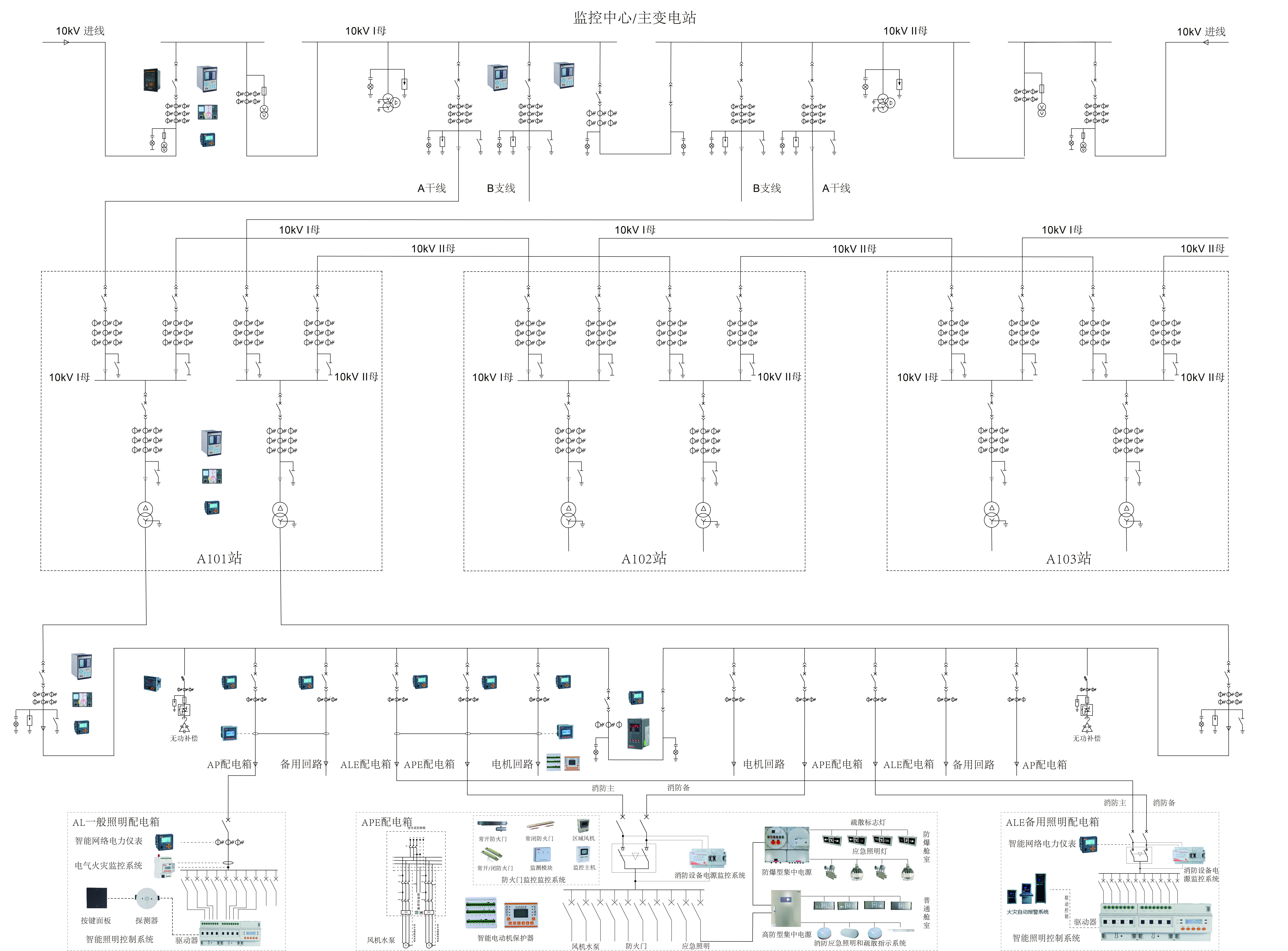 电力监控系统实现对管廊变电站、配电房内断路器、变压器、柴油发电机以及其它重要设备进行监视、测量、记录、报警等功能,并与保护设备和远方控制中心及其他设备通信,实时掌握管廊变电站和配电房运行状况,快速排除故障,保障管廊供电可靠性。