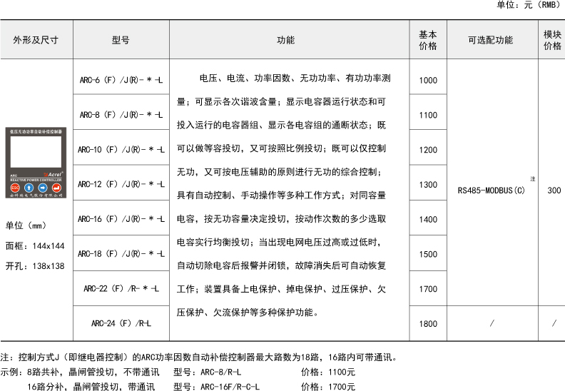 该产品具备RS485通讯接口,其所采样得到的电压、电流、频率、有功功率、无功功率、谐波含量、功率因数、温度可通过通讯接口传送到其它外部设备。产品具备过电压、欠电压、欠流锁定、断相、过畸变、温度保护功能。