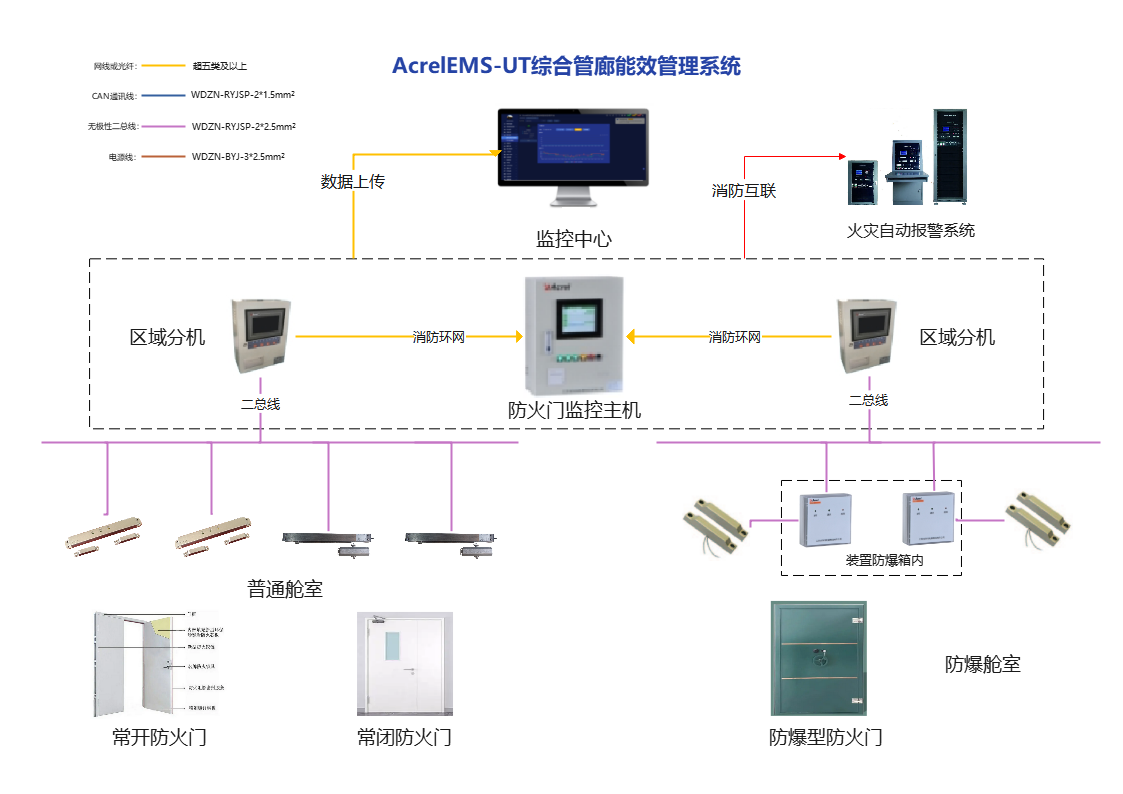 防火门监控系统主要是通过防火门监控模块及其附件来检测现场常开,常闭防火门的状态;当火灾发生时,控制现场的常开防火门关闭,并通过门磁开关来反馈现场的防火门的关闭状态,有效抑制火势蔓延阻止烟气扩散,确保人员安全疏散及减少火灾损失。