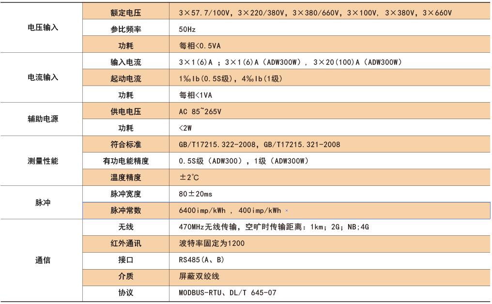 产品简介:ADW300无线计量仪表主要用于计量低压网络的三相有功电能,具有RS485通讯和470MHz无线通讯功能,方便用户进行用电监测、集抄和管理。可灵活安装于配电箱内,实现对不同区域和不同负荷的分项电能计量,统计和分析。