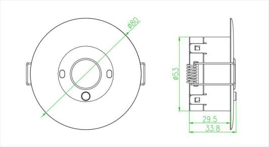 5、外形尺寸:ф80mm*33mm;产品外露尺寸:ф80mm*2.5mm