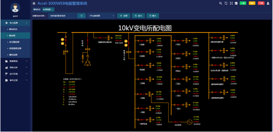 本项目电压等级包含35kV、10kV及04kV,共安装628只多功能数显仪表,14只温控仪。实现各回路及设备实时在线监测、故障报警、用能统计、能效分析等功能。