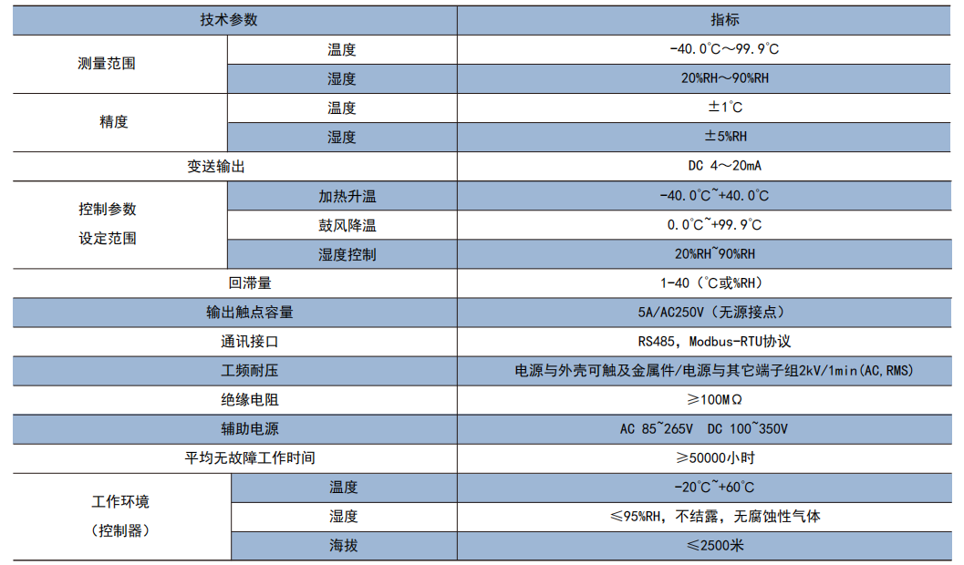 技术要求:湿度≧85%RH加热除湿,≦80%停止;温度≧40℃鼓风降温,≦5℃加热升温。