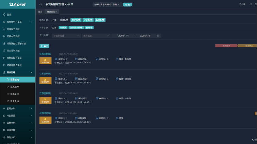Acrelcloud-6800智慧消防云平台基于物联网、大数据、云计算等现代信息技术,将分散的火灾自动报警设备、电气火灾监控设备、烟感探测器、消防水灭火系统、气体灭火系统、消火栓防火门系统、应急照明和疏散指示系统、消防设备电源监控系统等设备联网,对这些设备的状态进行动态感知、智能识别、主动预警、应急报警,通过云平台进行数据分析、挖掘和趋势分析,实现消防安全隐患识别、早期火灾预警、应急联动、落实多元责任监管,实现了无人化值守智慧消防,实现智慧消防“自动化”、“智能化”、“系统化”、切实保障人民的生命和财产安全。